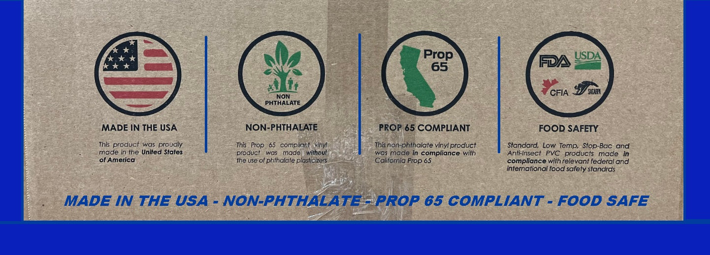 PVC / Vinyl Strip Door Bulk Rolls are made of PVC material which is eco-friendly, anti scratch, waterproof, crystal clear and long lasting; Withstands temperatures -15 degrees F to 122 degrees F. Widely used everywhere, from small interior pedestrian doorways to large exterior warehouse doors. USDA Approved, NSF Certified Kit Systems